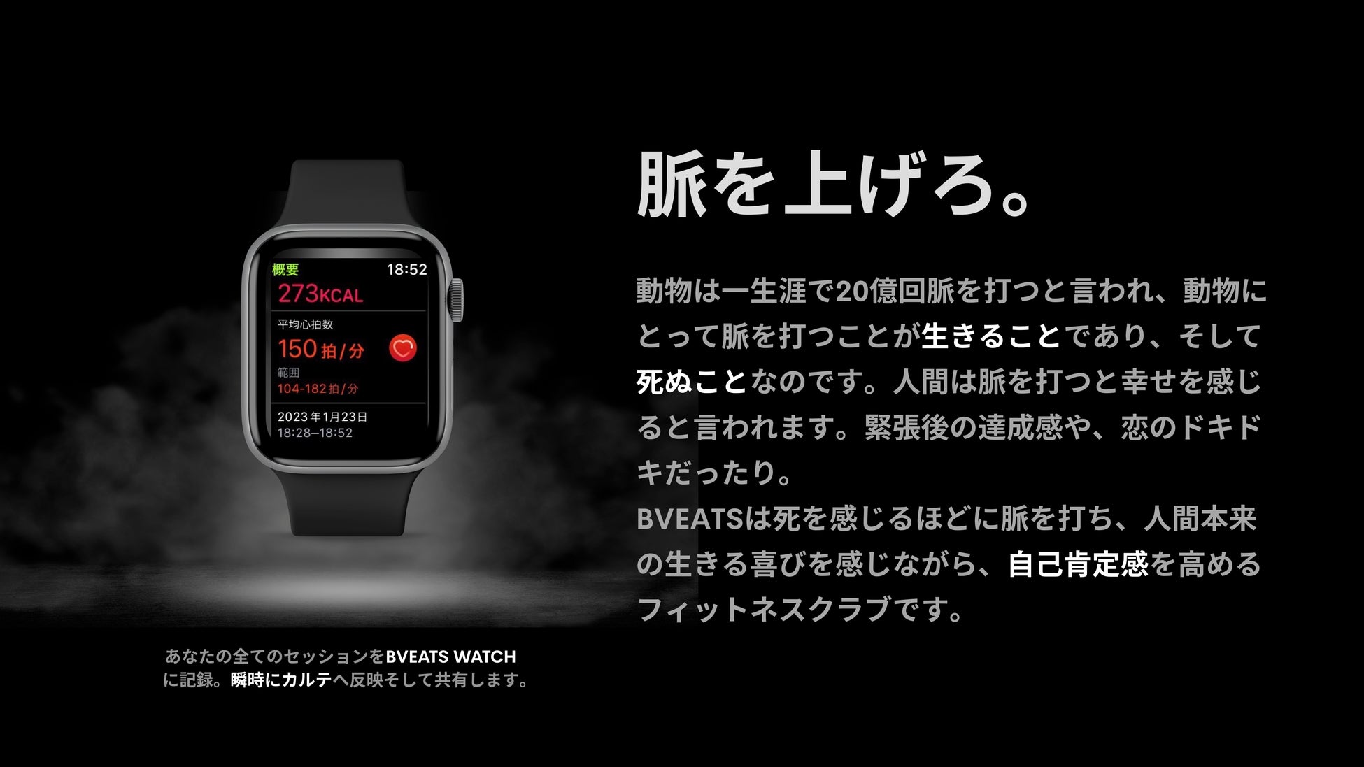 「脈を上げろ。」のコンセプトのもと、BVEATSは品質にこだわり、これまでWEBマーケティングや広告ではなく、会員のクチコミと紹介だけで店舗を展開してきました。