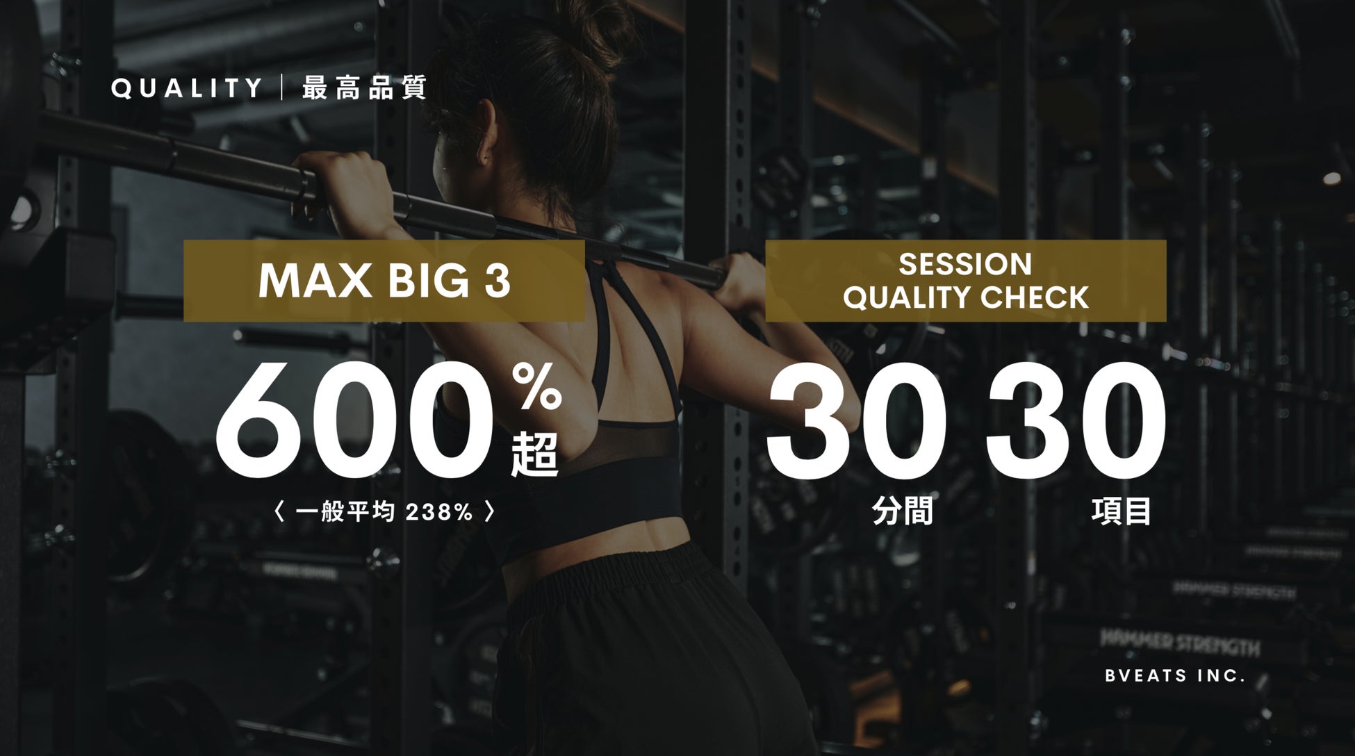 「BVEATS」のパーソナルトレーナーであるエナジストは、「BIG 3 MAX体重比600%」という自身のフィジカルに加え、「30分間で30項目」という接客/指導のチェックを満たす選りすぐりのトレーナーです。エナジストの品質こそが、BVEATSの自信であり、口コミだけで店舗を拡大してきた理由です。