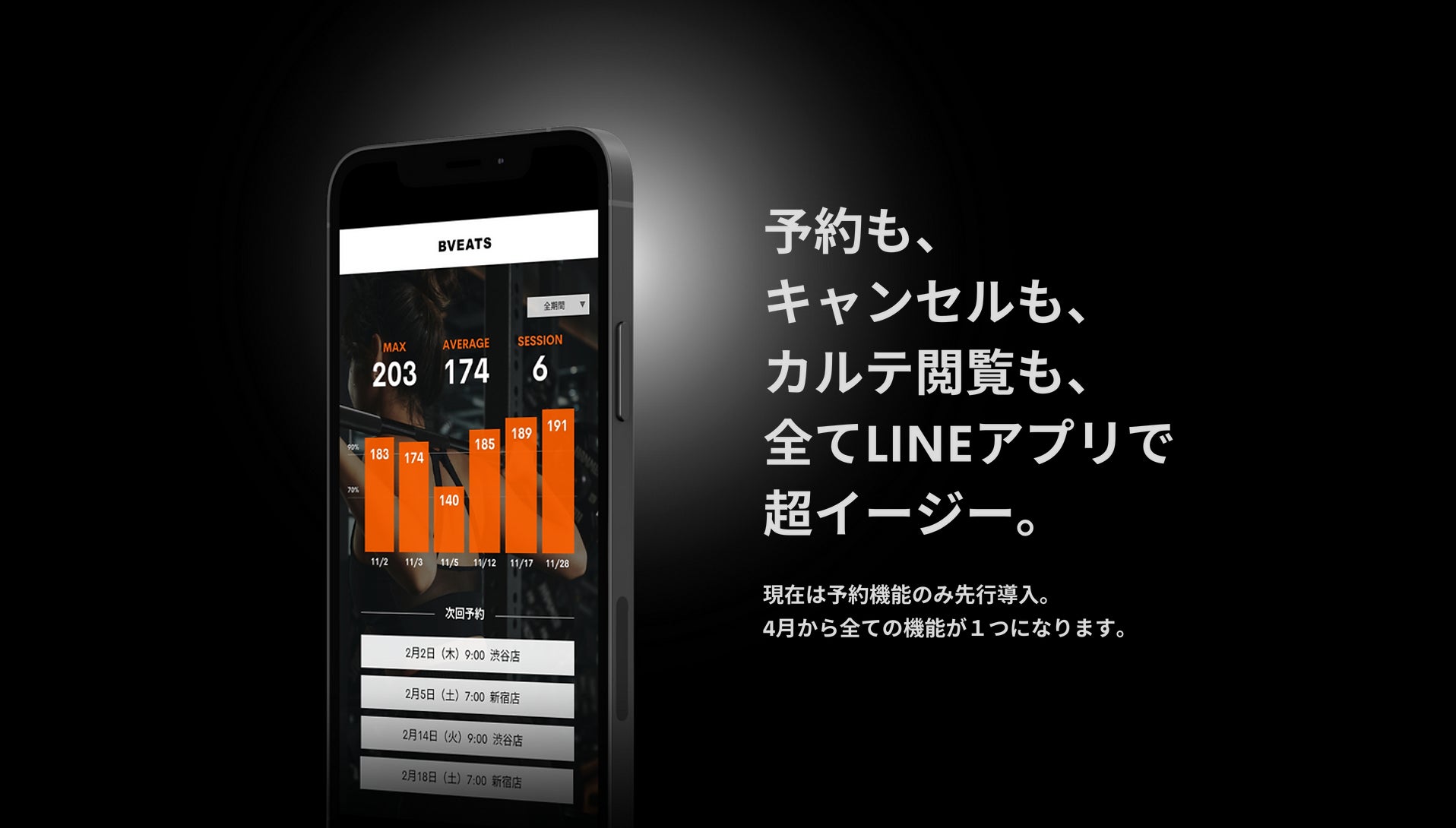 BVEATS専用LINEアプリで、入会/予約/リマインド/キャンセル/プラン変更まで、全て一括管理できます。