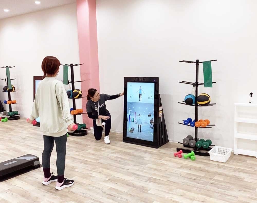 マシンのモニター画面上部に映るAIトレーナーの動きにあわせて動く新感覚のパーソナルトレーニング