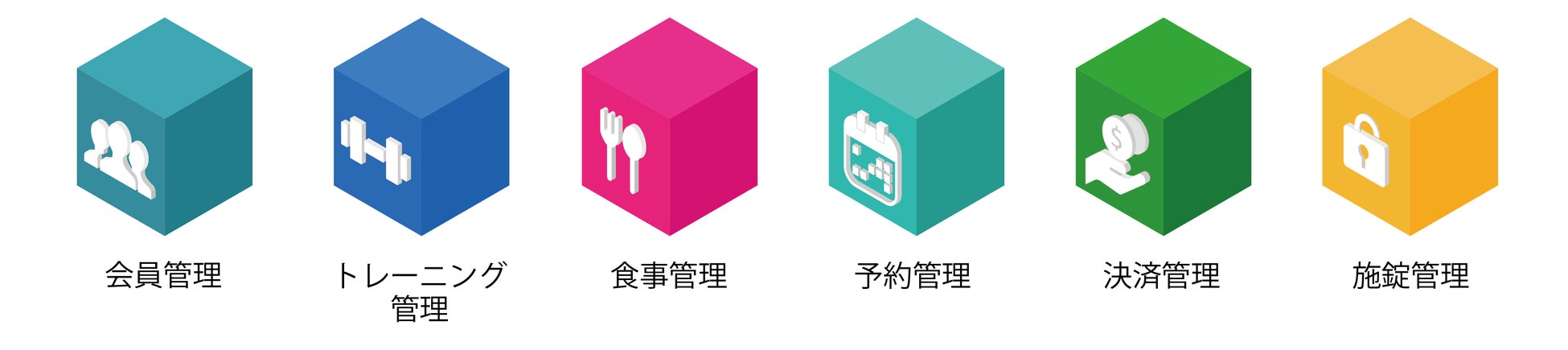 会員情報や予約の管理など、ジム運営に欠かせない基本的な業務のほか、トレーニングや食事の管理、決済管理や施錠管理まで、ジム運営にかかわる業務をトータルでサポートします。